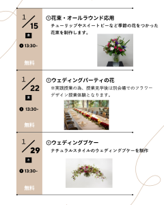授業見学はフラワーデザイン授業日であればいつでも可能です。