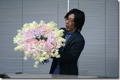 テクニックはもちろんのこと、コンテストに出品する際の注意事項、切花生産者に対する想い、フローリストとしての心構えなどを、ご自身の経験も含めとても分かり易くお話しいただきました。