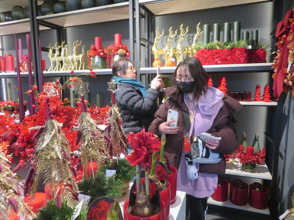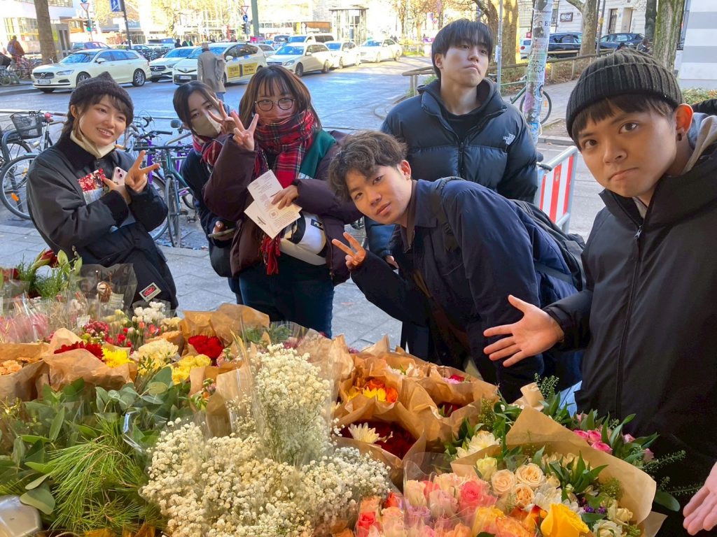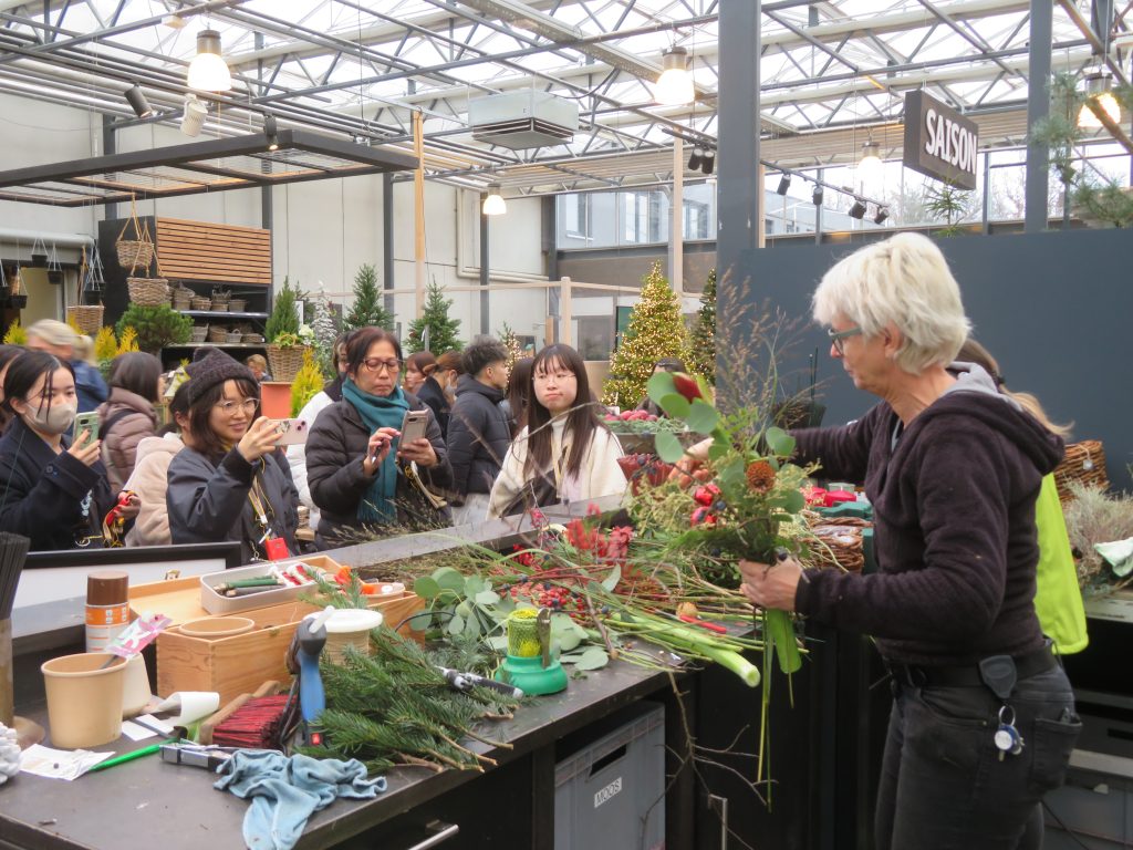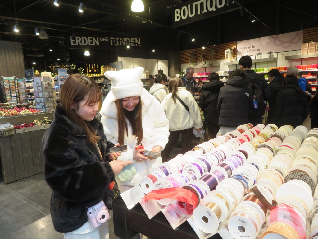 学生たちは本場のクリスマスオーナメントやリボンを買い込み、ドイツの豊かな「花の暮らし」を体験。