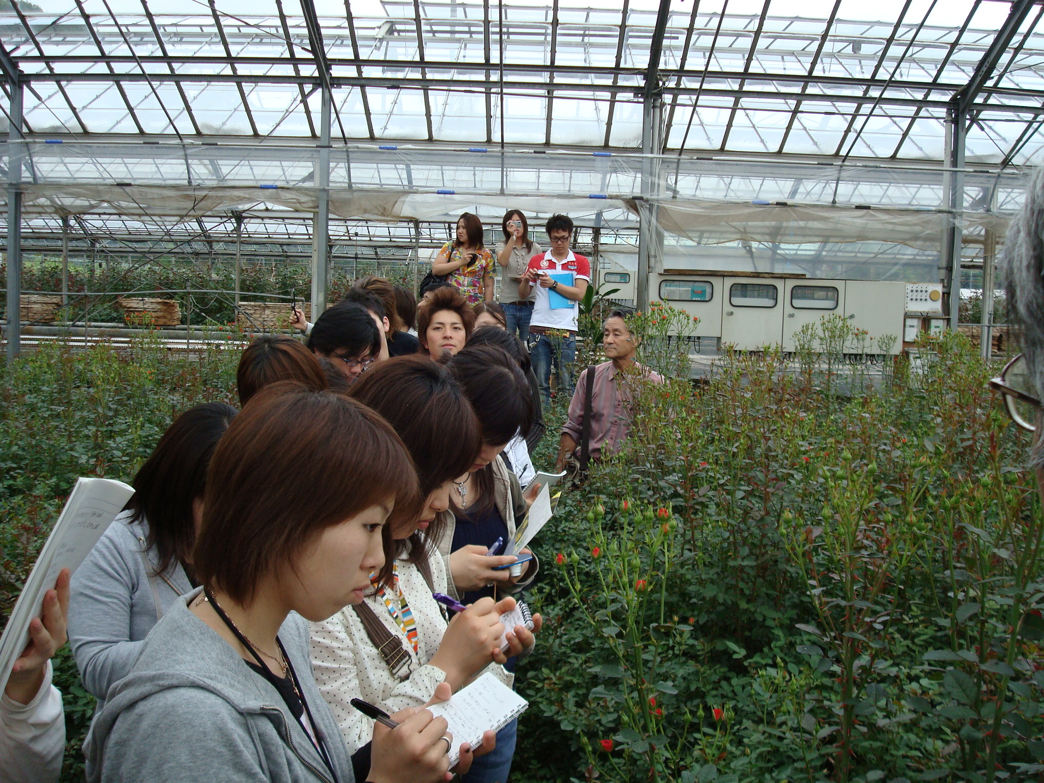 産地見学を終えて、ある学生が「今まで店先に並んでいる花や鉢物が、市場から仕入れて店先に並べるだけのものとしか考えていなかったが、生産者が思いを込めてつくった愛情ある商品であることが分った」と話していたのが印象的でした。